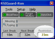 With RSIGuard's Work Restrictions feature, RSIGuard alerts you when you have reached your prescribed work limit. Although the limit is not strictly enforced, it makes keeping track of how much you are working very easy — and your compliance is recorded as part of your DataLogger data.